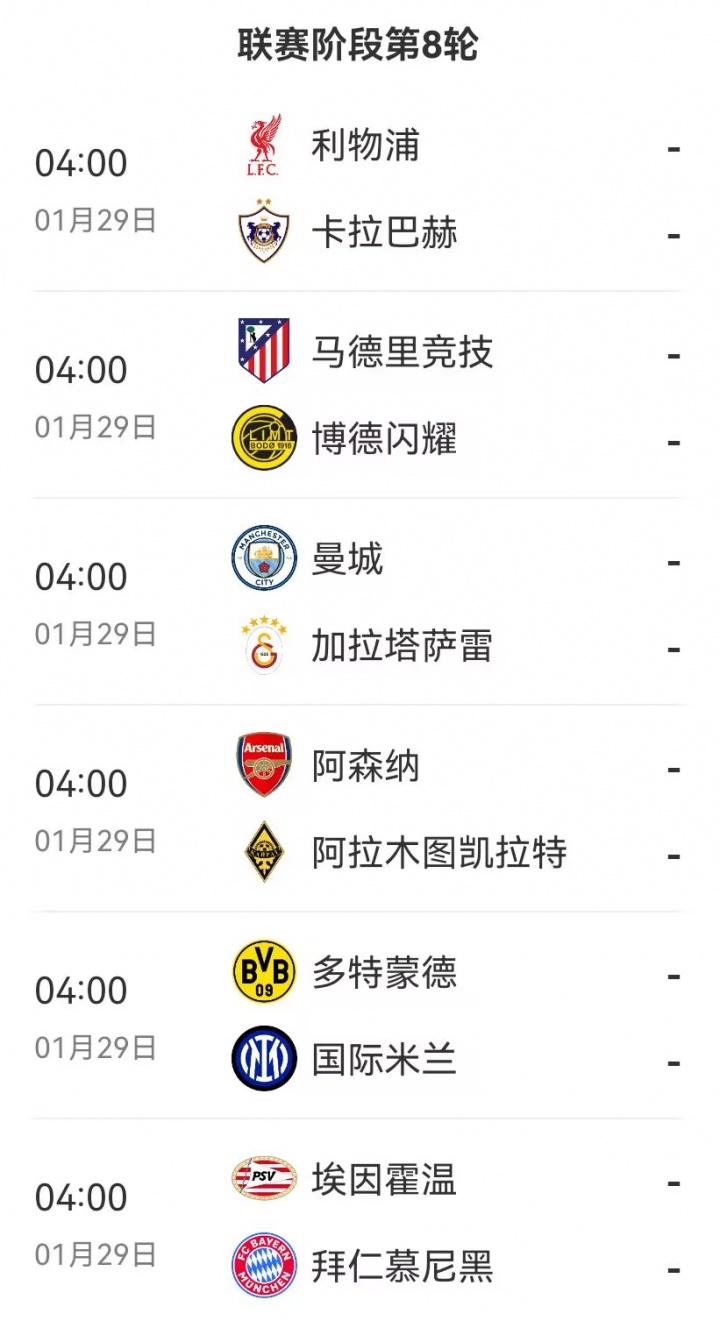 天天盈球足球比分-还剩一轮!欧冠联赛阶段晋级形势:阿森纳拜仁锁定前八 4队已出局